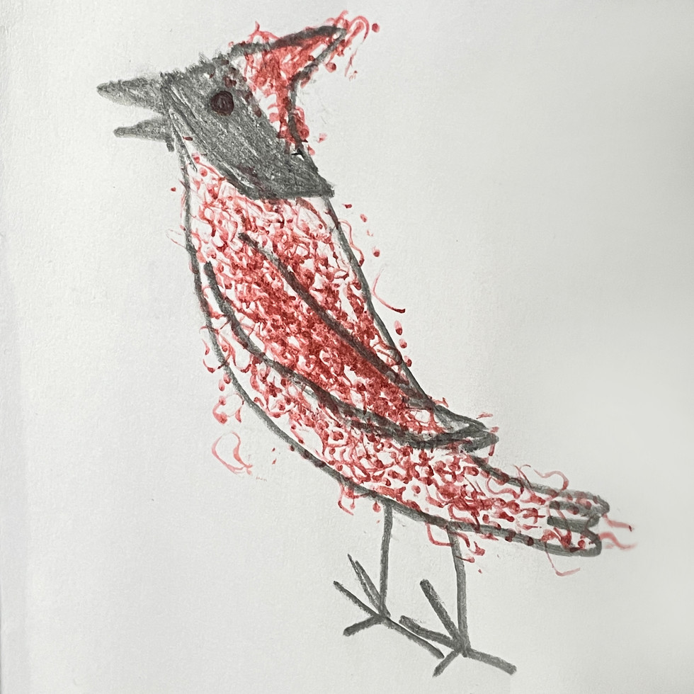 Last week, I received a handmade card from a talented young artist who happens to share my love of birds. I am just so grateful for these little reminders that my first book is still finding its way into the hands of new readers. I hope Izzy doesn't mind that I wanted to showcase her artwork. I am so impressed with every detail of this card. She even included an emblem on the back of the card! The texture on the cardinal was eye-catching too, and reminiscent of a pointillism technique. I love it.